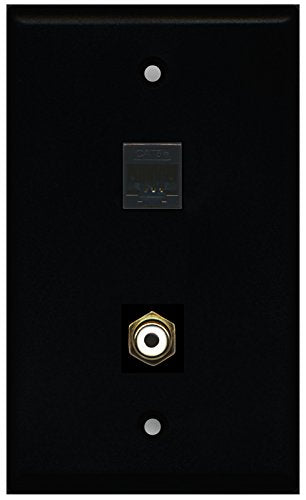 RiteAV - Black 1 Port RCA White 1 Port Cat5e Ethernet Black Wall Plate