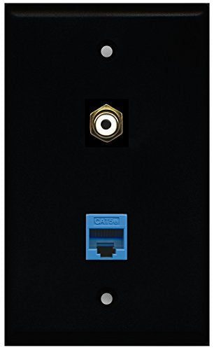 RiteAV - Black 1 Port RCA White 1 Port Cat5e Ethernet Blue Wall Plate