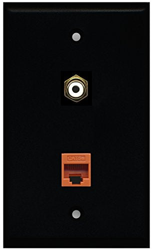 RiteAV - Black 1 Port RCA White 1 Port Cat5e Ethernet Orange Wall Plate