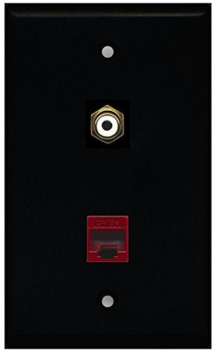RiteAV - Black 1 Port RCA White 1 Port Cat5e Ethernet Red Wall Plate