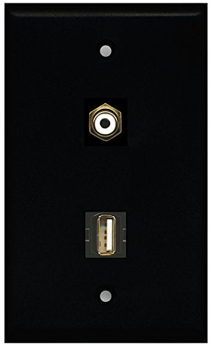 RiteAV - Black 1 Port RCA White 1 Port USB A-A Wall Plate