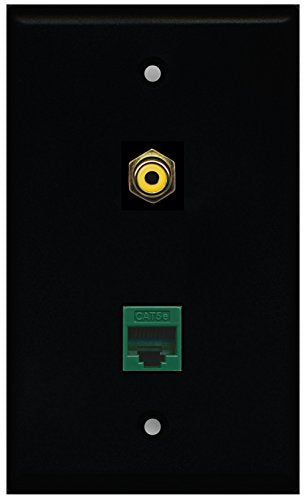RiteAV - Black 1 Port RCA Yellow 1 Port Cat5e Ethernet Green Wall Plate