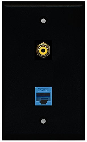 RiteAV - Black 1 Port RCA Yellow 1 Port Cat6 Ethernet Blue Wall Plate