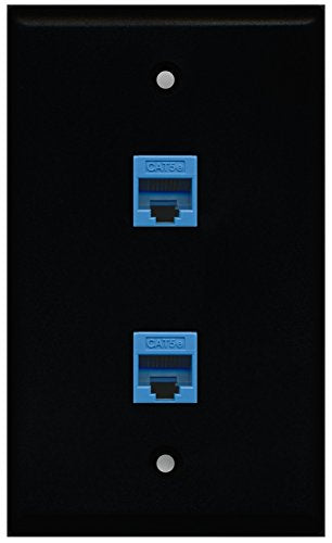 RiteAV - Black 2 Port Cat5e Ethernet Blue Wall Plate
