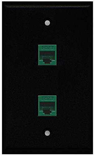 RiteAV - Black 2 Port Cat6 Ethernet Green Wall Plate