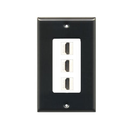RiteAV - Black 3 HDMI Port Wall Plate with White Jacks - Decorative