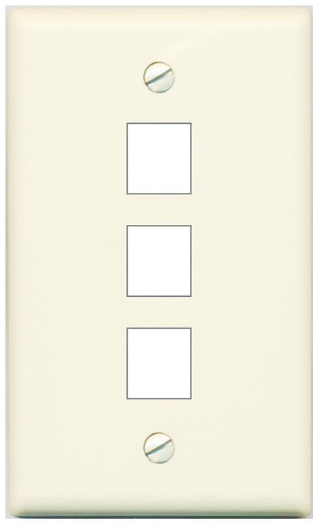 RiteAV Blank Wall Plate for Keystone Jacks - Light Almond 1 Gang 3 Port