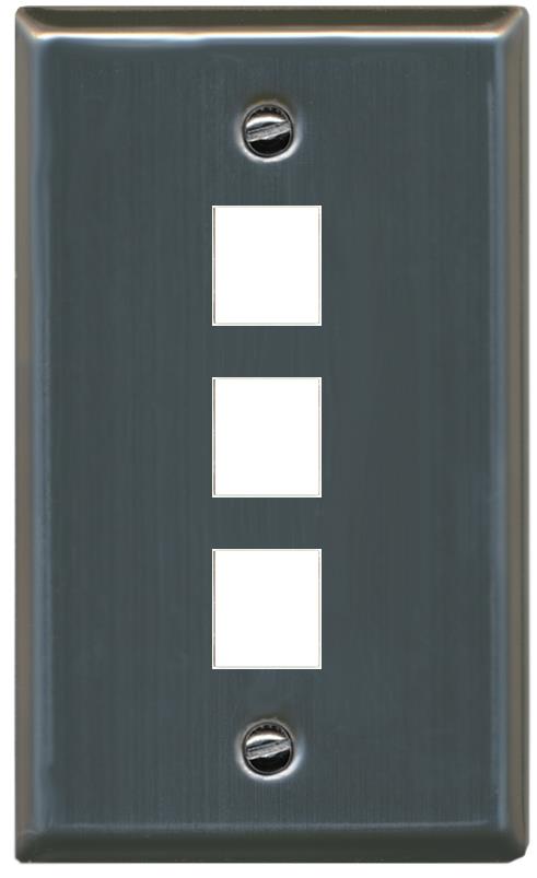 RiteAV Blank Wall Plate for Keystone Jacks - Stainless Steel 1 Gang 3 Port