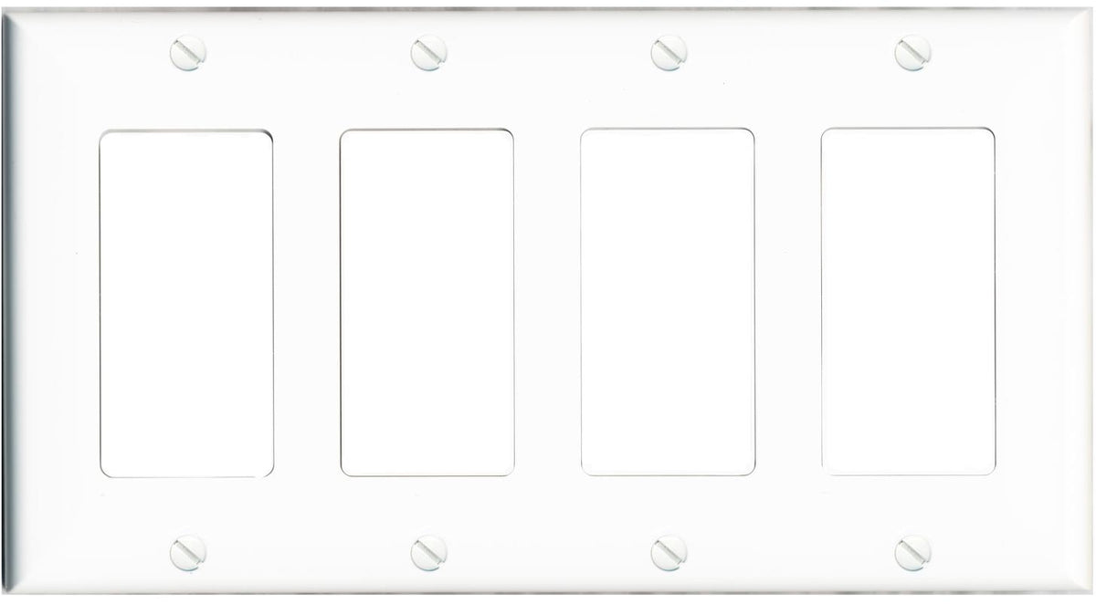 RiteAV Blank Wall Plate for Keystone Jacks - White 4 Gang Decorative