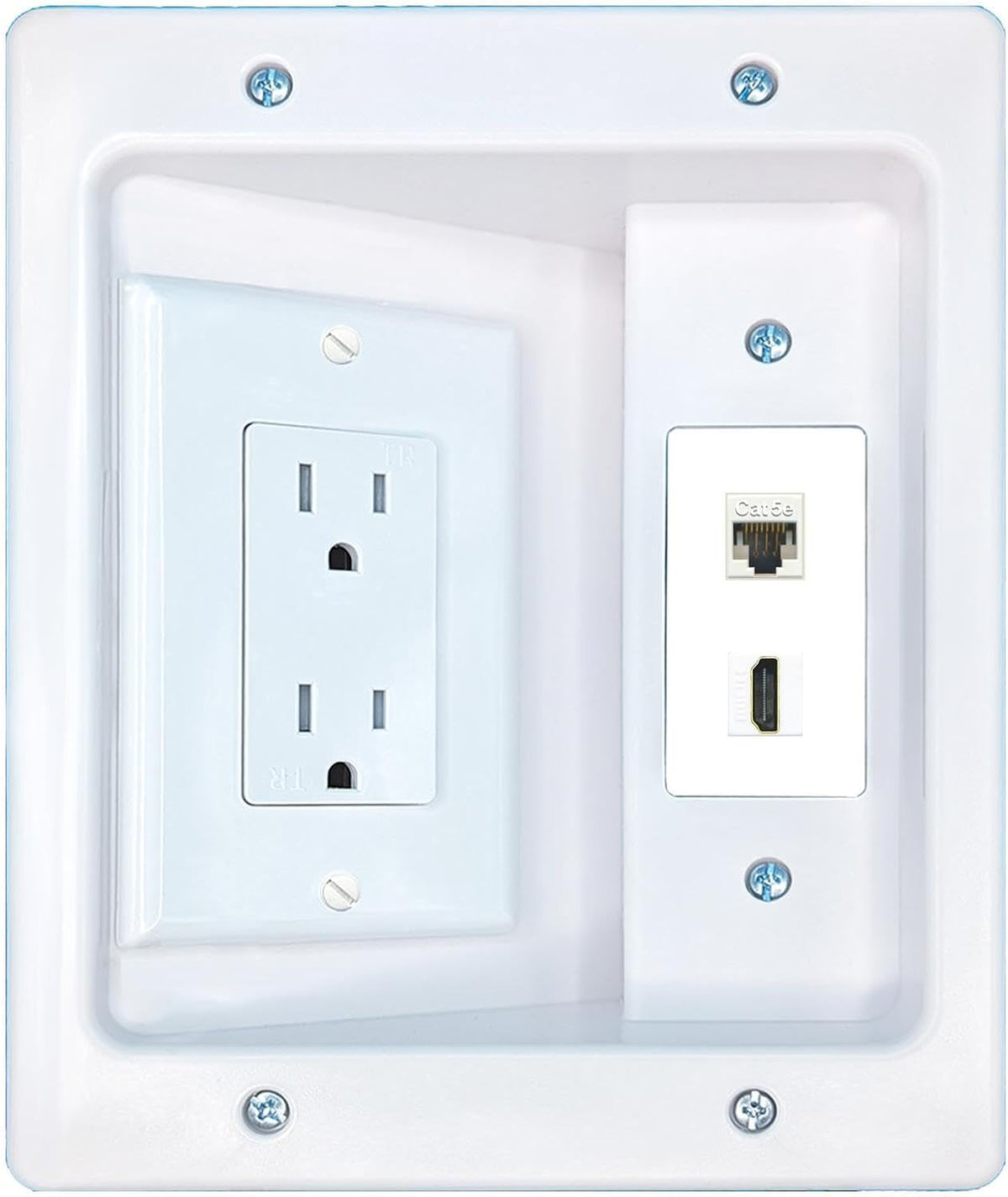 RiteAV CAT5E HDMI Recessed Wall Plate Cable Concealer Management Kit with Power Outlet Hides Cords and Cables