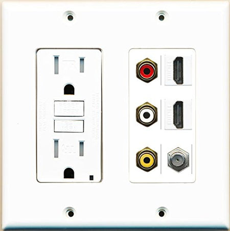 RiteAV GFCI 125V 15A Power Outlet 2 HDMI Coax RCA Composite Decorative Wall Plate White
