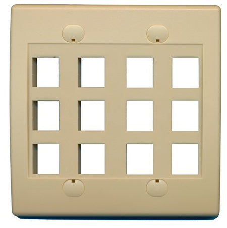 RiteAV - Keystone Wall Plate Double Gang 12-Port (1 Piece Flush) - Ivory