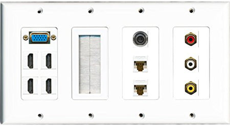 RiteAV Mesh Brush SVGA 4 HDMI 2 Cat6 Composite Video 3.5mm 4-Gang Wall Plate