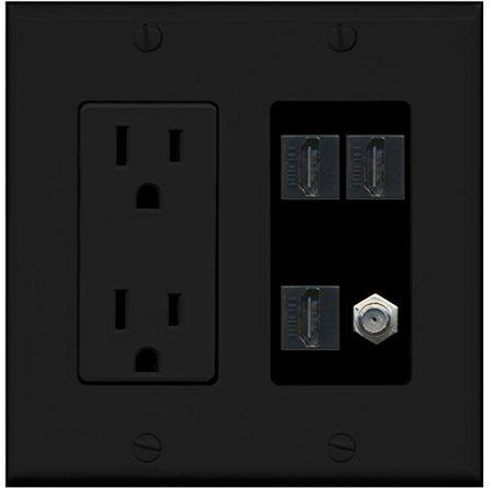 RiteAV Power Outlet 3 HDMI White Coax Wall Plate - Black