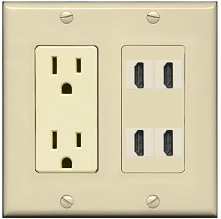 RiteAV Power Outlet 4 HDMI Wall Plate - Ivory