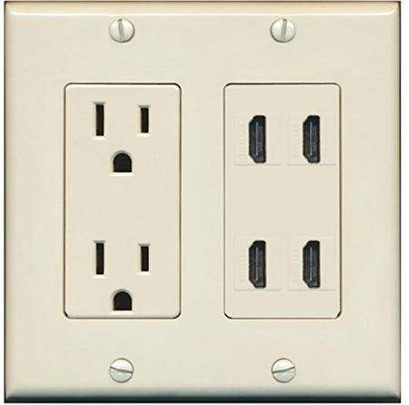RiteAV Power Outlet 4 HDMI Wall Plate - Light Almond