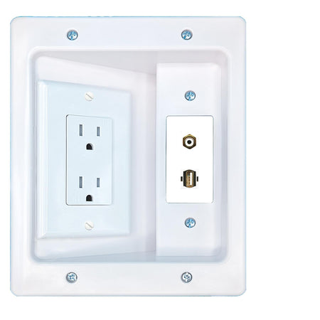 RiteAV RCA-White USB2 Recessed Wall Plate Cable Concealer Management Kit with Power Outlet Hides Cords and Cables