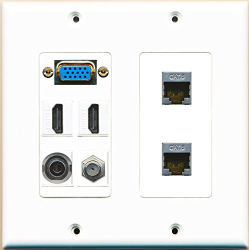 RiteAV Svga 2 HDMI White Coax 3.5mm 2 Shielded Cat6 Wall Plate White