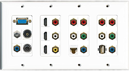 RiteAV Svga 3 HDMI Coax Cat6 3.5mm Toslink USB Composite 2 Component Wall Plate