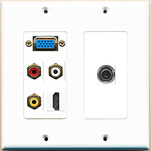 RiteAV SVGA HDMI Composite Video 3.5mm Wall Plate Dual Gang Decorative White