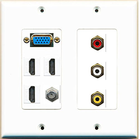 RiteAV - (SVGA Plate -2 Gang) 3 HDMI 1 Coax Composite Video Wall Plate Dual Gang White