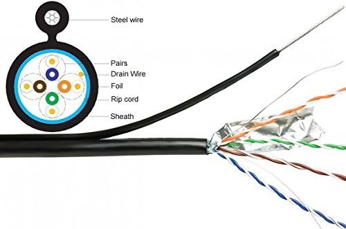 Details: 1000ft spool. All weather UV rated outer jacket. 24AWG solid copper center conductors with aluminum foil shielding and messenger wire. Rated one of the best in USA.