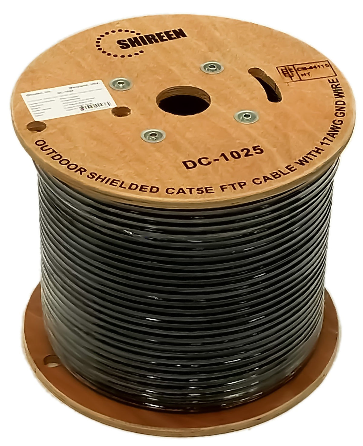 Shireen DC-1025 - Outdoor CAT5e FTP - Shielded Cable with a Solid 17AWG CCS Messenger Wire, 1000ft Spool