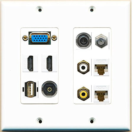 RiteAV - (SVGA Plate 2 HDMI Coax 2 Cat6 RCA White/Yellow 3.5mm Toslink USB Wall Plate