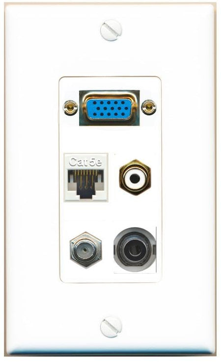 RiteAV SVGA + 3.5mm CAT5E-WHITE COAX RCA-WHITE Wall Plate [White]