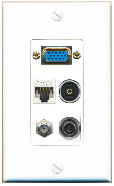 RiteAV SVGA + 3.5mm CAT5E-WHITE COAX TOSLINK Wall Plate [White]
