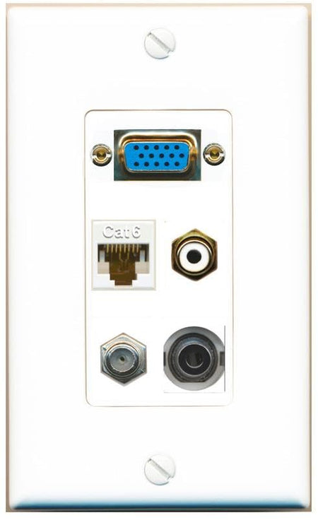 RiteAV SVGA + 3.5mm CAT6 COAX RCA-WHITE Wall Plate [White]