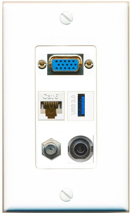 RiteAV SVGA + 3.5mm CAT6 COAX USB-3 Wall Plate [White]