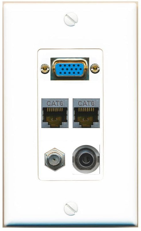 RiteAV SVGA + 3.5mm 2 CAT6-SHIELDED COAX Wall Plate [White]
