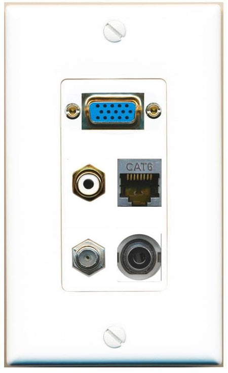 RiteAV SVGA + 3.5mm CAT6-SHIELDED COAX RCA-WHITE Wall Plate [White]