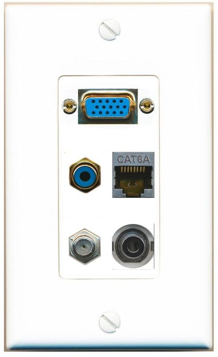 RiteAV SVGA + 3.5mm CAT6A COAX RCA-BLUE Wall Plate [White]