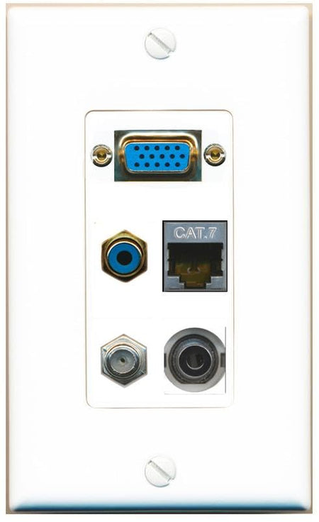 RiteAV SVGA + 3.5mm CAT7 COAX RCA-BLUE Wall Plate [White]