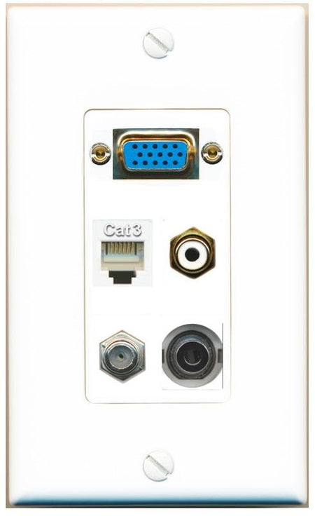 RiteAV SVGA + 3.5mm COAX PHONE RCA-WHITE Wall Plate [White]