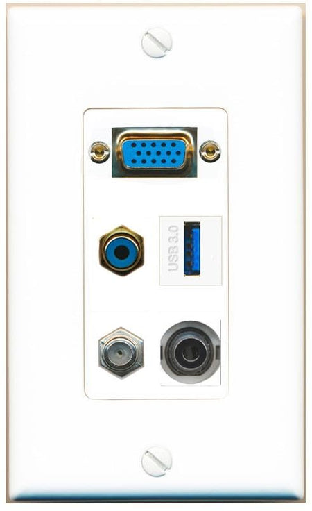 RiteAV SVGA + 3.5mm COAX RCA-BLUE USB-3 Wall Plate [White]