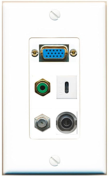 RiteAV SVGA + 3.5mm COAX RCA-GREEN USBC Wall Plate [White]