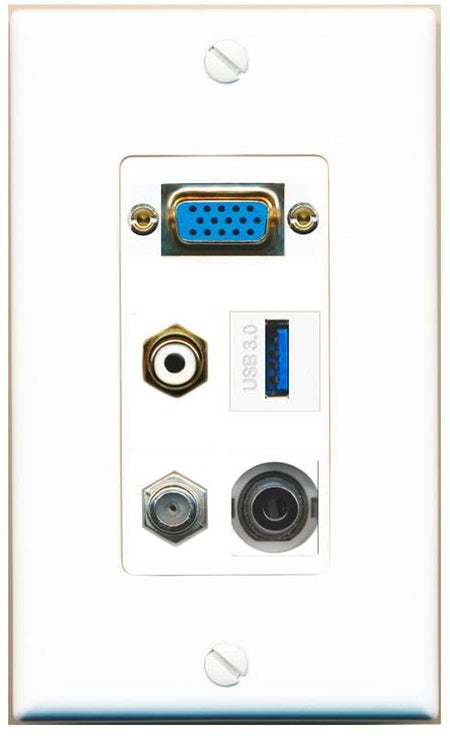 RiteAV SVGA + 3.5mm COAX RCA-WHITE USB-3 Wall Plate [White]