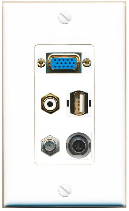 RiteAV SVGA + 3.5mm COAX RCA-WHITE USB2 Wall Plate [White]