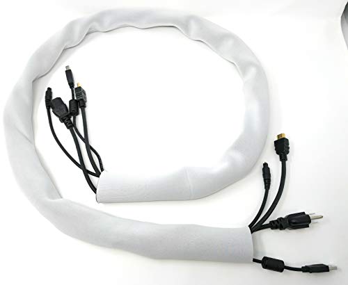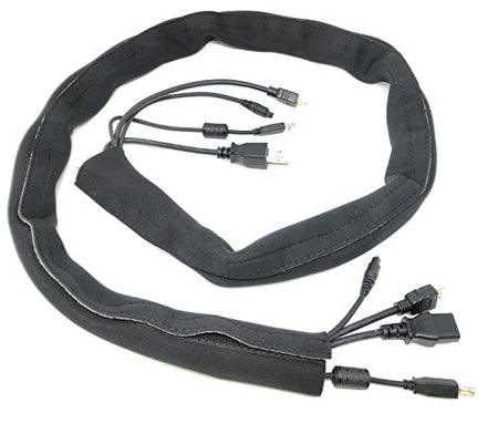 Details: Ultra Spec Cable's 118" Neoprene Cable Management Sleeve is a convenient and affordable solution to protect and organize multiple cables. The form-fitted neoprene retains its shape to keep the cables tidy, while the flexibility of the sleeve allows you to bend and position the bundle easily. The Velcro provides easy access for adding/removing cables and it's durably sewn to each side, so it's capable of withstanding wear and tear. The sleeve is reversible in black or white, to match any decor and color-coordinated Velcro Strips are provided, if you choose to mount the sleeve a wall or desk. The 1.57" opening can comfortably fit numerous cables used to connect PCs, TVs, Home Entertainment Systems and Gaming Consoles. It conceals and organizes the bundled cables, to provide a neater look, while the low profile design provides you with more space around your desk, home, office or workshop by keeping power cords, USB Cables, Cell Phone Chargers, headphones and Audio Cables grouped together and out of the way. It's suitable for any environment where cables are used, since it's flame retardant, washable and resistant to high temperatures. (The cables pictured in the photo are not included. They are used for demonstration purposes only.)