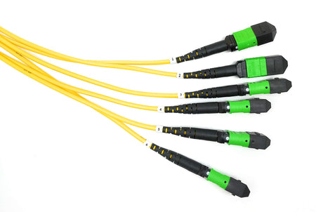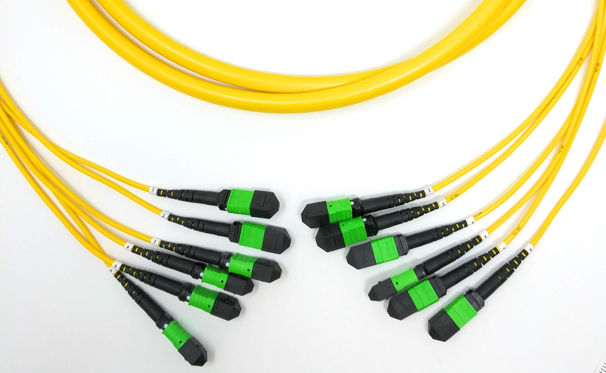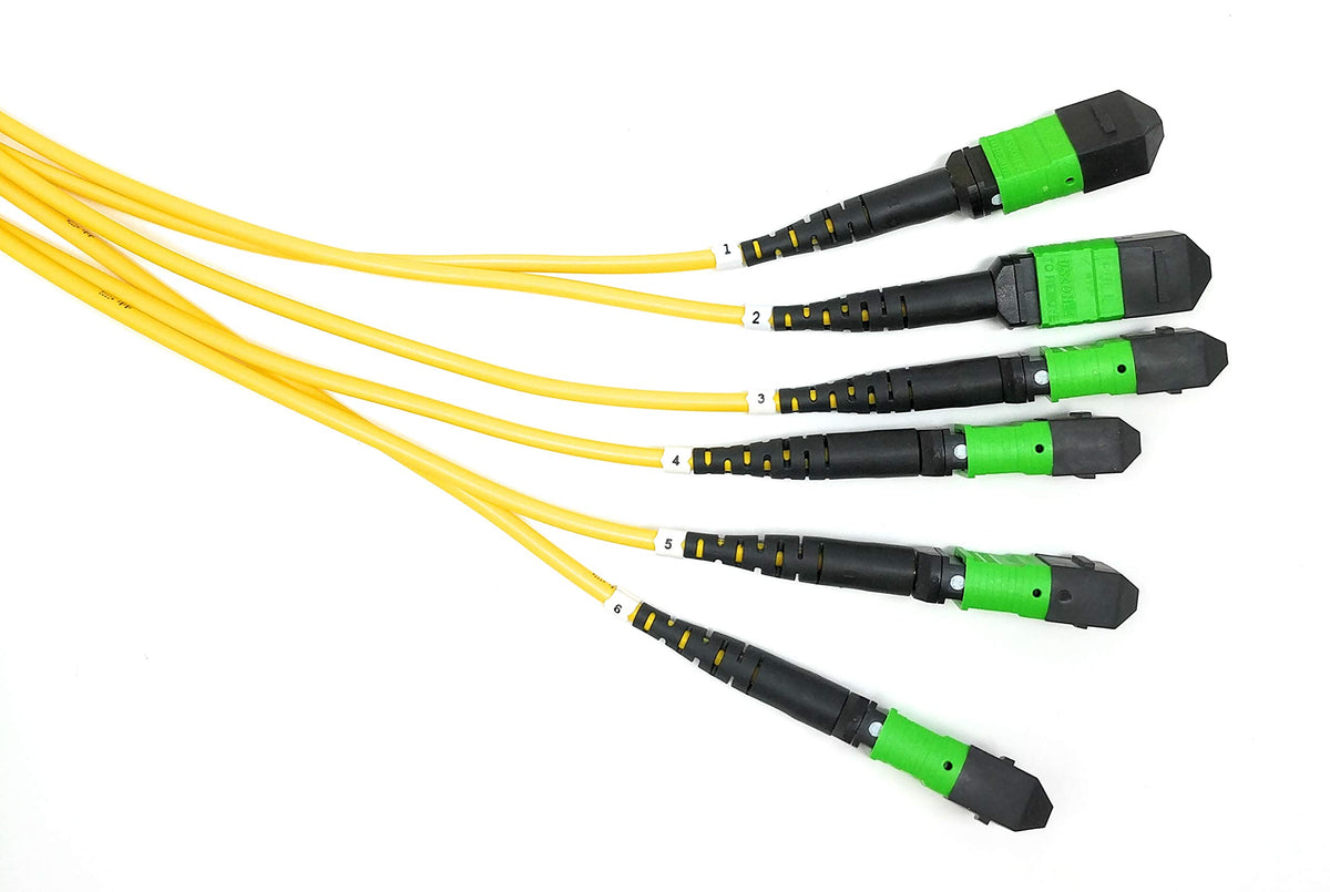 Details: Ultra Spec Cables Singlemode 72 Fiber Trunk Cable is ideal for use in Data Center Network Architecture that requires ultra-fast deployment of high-density permanent 10 and 40 Gigabit Ethernet Connections in a single assembly. The 72 Fiber assembly is comprised of 6 x 12 Fiber MTP Female to Female legs that provide backbone cabling for SAN/LAN systems by interlinking panels modules and MTP Fanouts in Main Horizontal and Equipment Distribution Areas. The MPO connector's push-pull mechanism simplifies engagement/disengagement and can plugged in/removed with one hand and without the use of tools. The connector design also prevents snagging when the cables are being installed. The numbered collars on the cable legs simplify identification and ensure that the proper connection is being made. This cost-effective solution is a great alternative to pricey time consuming field terminations and satisfies the demand for reducing your network footprint while providing reliable high-speed connections. We offer a variety of breakout cable options to suit specific needs and custom lengths/configurations are available. MPO Breakout/Fanout Cables cassettes fiber adapter panels and cleaners are also purchasable so be sure to check out our full line of complementary products.
