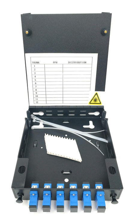 Ultra Spec Cables Wall Mount Fiber Enclosure with Splicing Module and Loaded 6 Port SC-UPC Singlemode LGX Panel