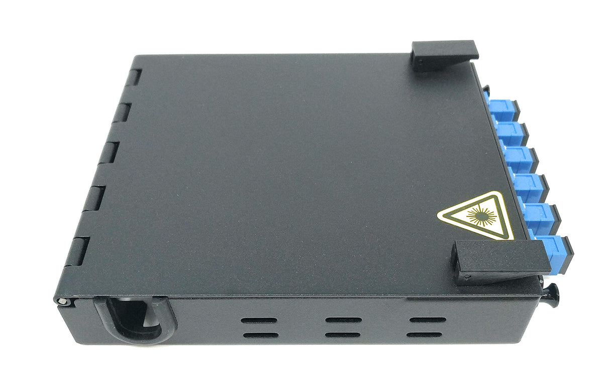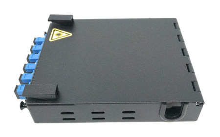 Details: Ultra Spec Cable Wall Mount Fiber Enclosure with Splicing Module and Loaded 6 Port SC-UPC Singlemode LGX Panel is ideal for organizing and safeguarding your critical fiber optic backbone connections. The enclosure is manufactured from high-quality cold rolled steel and the powder coated finish provides an added level of durability, while protecting the enclosure from corrosion. It weighs 26 ounces and measures 6.5" H x 5.5" W x 1.25" D. The Wall Mount Box includes a loaded 6 Port Singlemode Simplex SC-UPC LGX Panel. The SC-UPC Adapters precisely align SC Connectors using Ultra Physical Contact which results in Low Insertion Loss and High Return Loss. They're shipped with dust caps to prevent dust and debris from contaminating the adapter. The enclosure's top door provides quick access and the front panel is also removable if necessary, which is paramount during the initial installation or routine maintenance. The adhesive backed splice tray can be orientated as needed and the accessory pack consists cable ties and a Port Identification Card to keep the cables you will connect to the backside of the adapters, both tidy and cataloged. The Wall Mount Box provides optimum protection, keeps your fiber distribution organized when space is limited and maintains the integrity of your connections. It's perfect for use multi-building campus networks, like hospitals, universities, government facilities, corporate complexes and sectors like transportation and industrial automation. We offer a Spool Option instead of the Splice Tray as well as kits that include the 12 Strand Pigtails with different adapter types and polishes.