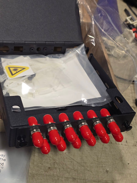 Ultra Spec Cable Wall Mount Fiber Enclosure with Spool and Loaded 12 Port ST-UPC OM1/OM2 Multimode LGX Panel is ideal for organizing and safeguarding your critical fiber optic backbone connections. The enclosure is manufactured from high-quality cold rolled steel and the powder coated finish provides an added level of durability while protecting the enclosure from corrosion. It weighs 26 ounces and measures 6.5" H x 5.5" W x 1.25" D. The Wall Mount Box includes a loaded 12 Port OM1/OM2 Multimode Simplex ST-UPC LGX Panel. The adapters precisely align ST Connectors using Ultra Physical Contact which results in Low Insertion Loss and High Return Loss and are shipped with dust caps to prevent dust and debris from contaminating the adapter. The enclosure's top door provides quick access and the front panel is also removable if necessary which is paramount during the initial installation or routine maintenance. The spool helps to route the fiber and stores the spliced fiber efficiently. The accessory pack consists cable ties and a Port Identification Card to keep the cables you will connect to the backside of the adapters both tidy and cataloged. The Wall Mount Box provides optimum protection keeps your fiber distribution organized when space is limited and maintains the integrity of your connections. It's perfect for use multi-building campus networks like hospitals universities government facilities corporate complexes and sectors like transportation and industrial automation. We offer a Splice Option instead of the Spool as well as kits that include the 12 Strand Pigtails with different adapter types and polishes.