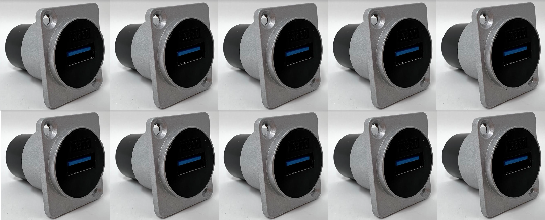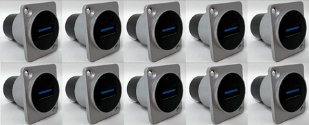 USB 3.0 A-type Female D Series Heavy Duty Chassis Panel Mount Connector Pass Through Solderless Bulkhead Coupler, Silver Metal Housing