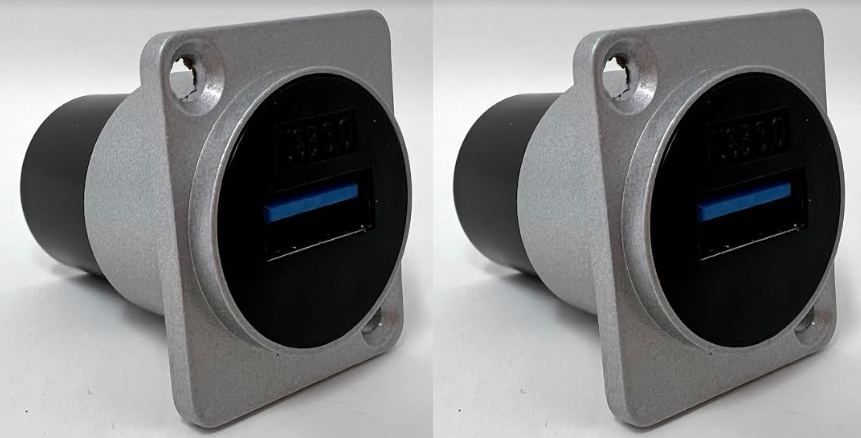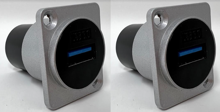 This particular D Series Coupler has silver metal housing (alternate colors are available) and accepts a USB 3.0 A-type Male Terminated Cable on the front and back side of the coupler. The USB 3.0 A-type Female Coupler supports data transfer speeds up to 5 Gbps is backwards compatible to USB 2.0. (Note that if a USB 2.0 Cable is used, the transfer rate will be limited to USB 2.0 speed.)