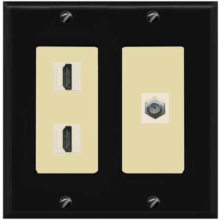 Coax 2 HDMI Wall Plate-2 Gang Black/Ivory