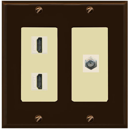 Coax 2 HDMI Wall Plate-2 Gang Brown/Ivory
